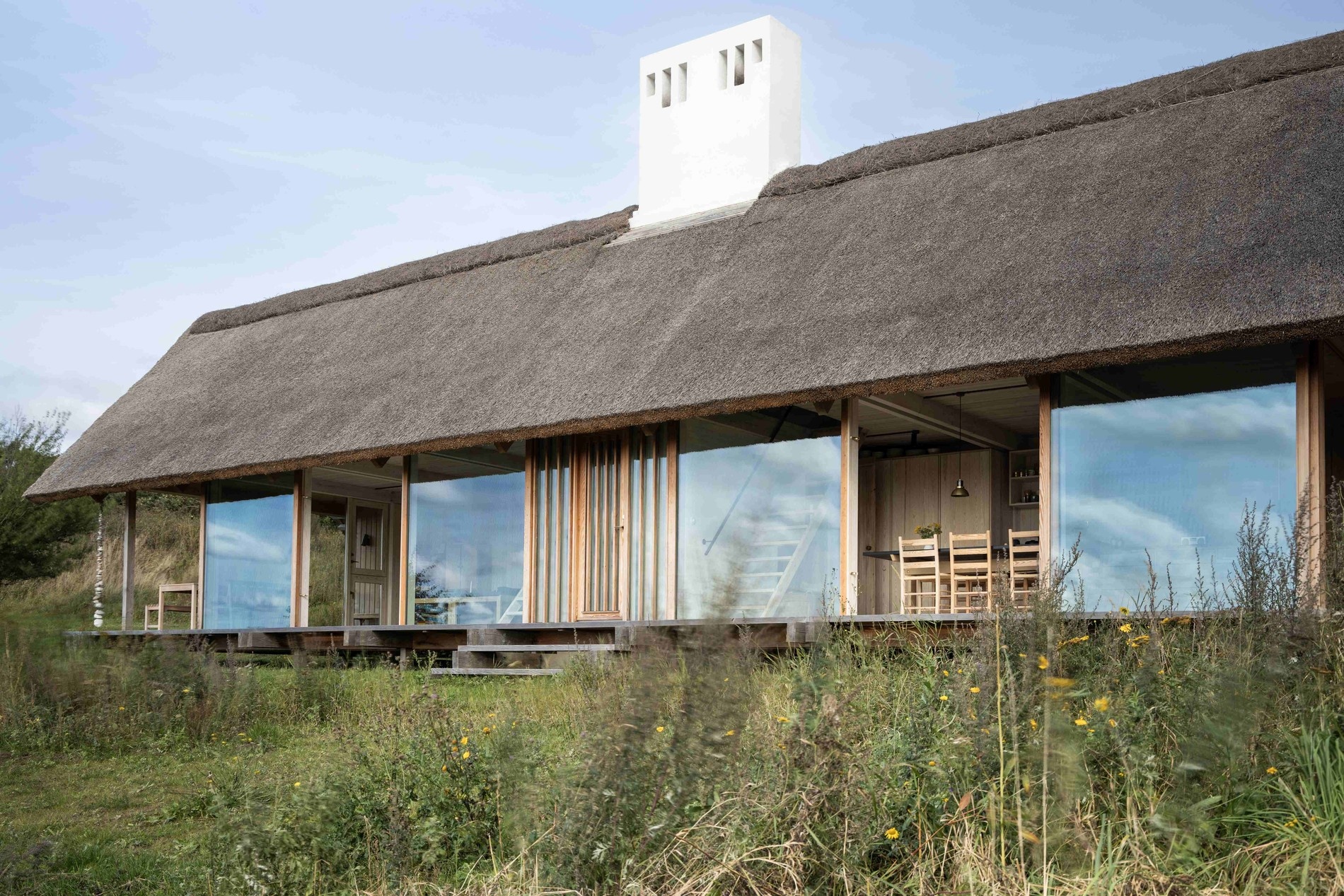 S nízkou doškovou střechou a odhalenou dřevěnou konstrukcí vzdával dům hold tradičním zemědělským usedlostem v oblasti a zároveň zaujal neotřelý, funkcionalistický přístup. Foto: Andrea Agatzke