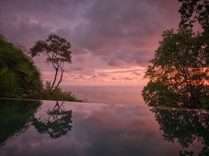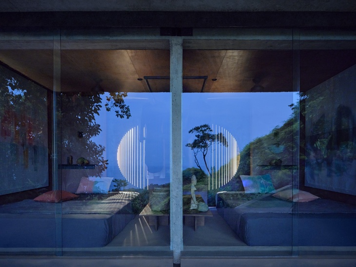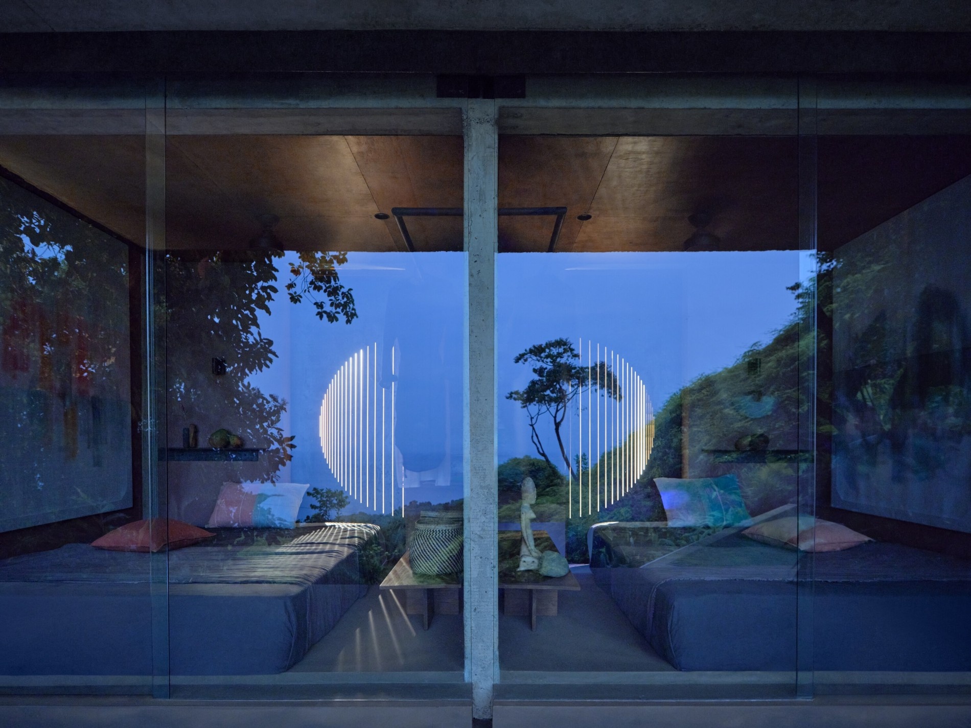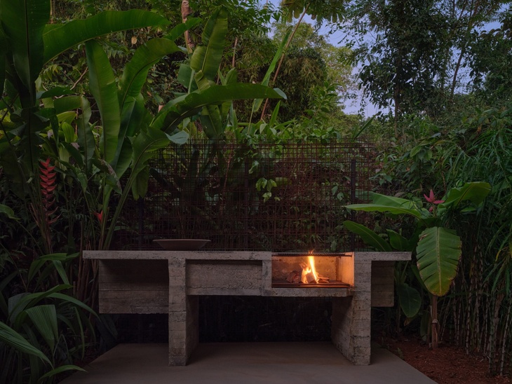 Vnímání neopakovatelné scenérie se umocnilo vynecháním celé jedné fasády v hlavním obytném prostoru. Živá scéna, měnící se každým okamžikem dne, prostupuje domem a rozlévá se zpět do okolní přírody. Bezprostřední přítomnost džungle, proudící vzduch, zvuky a světlo vtahují do hry všechny smysly a stírají hranice mezi světem uvnitř a vně. Namísto pozorovatele scény za oknem jste její přímou součástí. Každé místo je navrženo tak, aby v určité denní či noční chvíli poskytlo prostor slunci i hvězdám. Dům je zhmotněním harmonického dialogu mezi architekturou a přírodním prostředím.