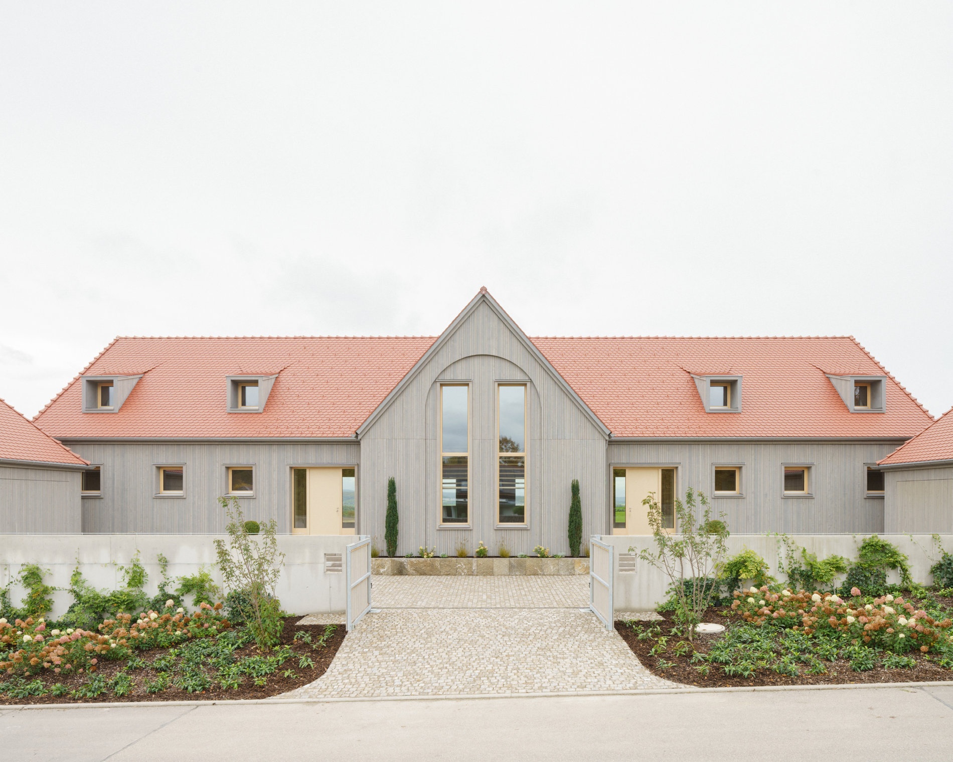 Dispozice i celkový vzhled staveb — včetně hlavních domů, garáží a ohradních zdí — čerpají inspiraci z nedalekého historického statku. Foto: Sebastian Schels