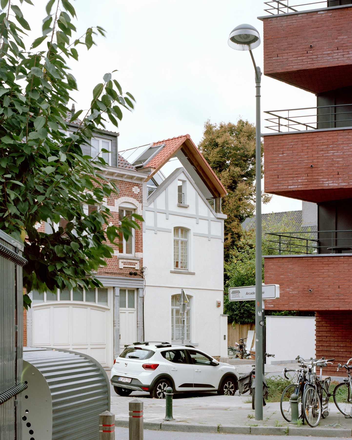 Crabe Fantôme je minimalistický rezidenční dům nacházející se ve Watermael-Boitsfortu v Belgii, navržený studiem O.U.V.R.A.G.E.S.. Je ukázkou nezvykle řešené transformace objektu. Foto: Maxime Delvaux