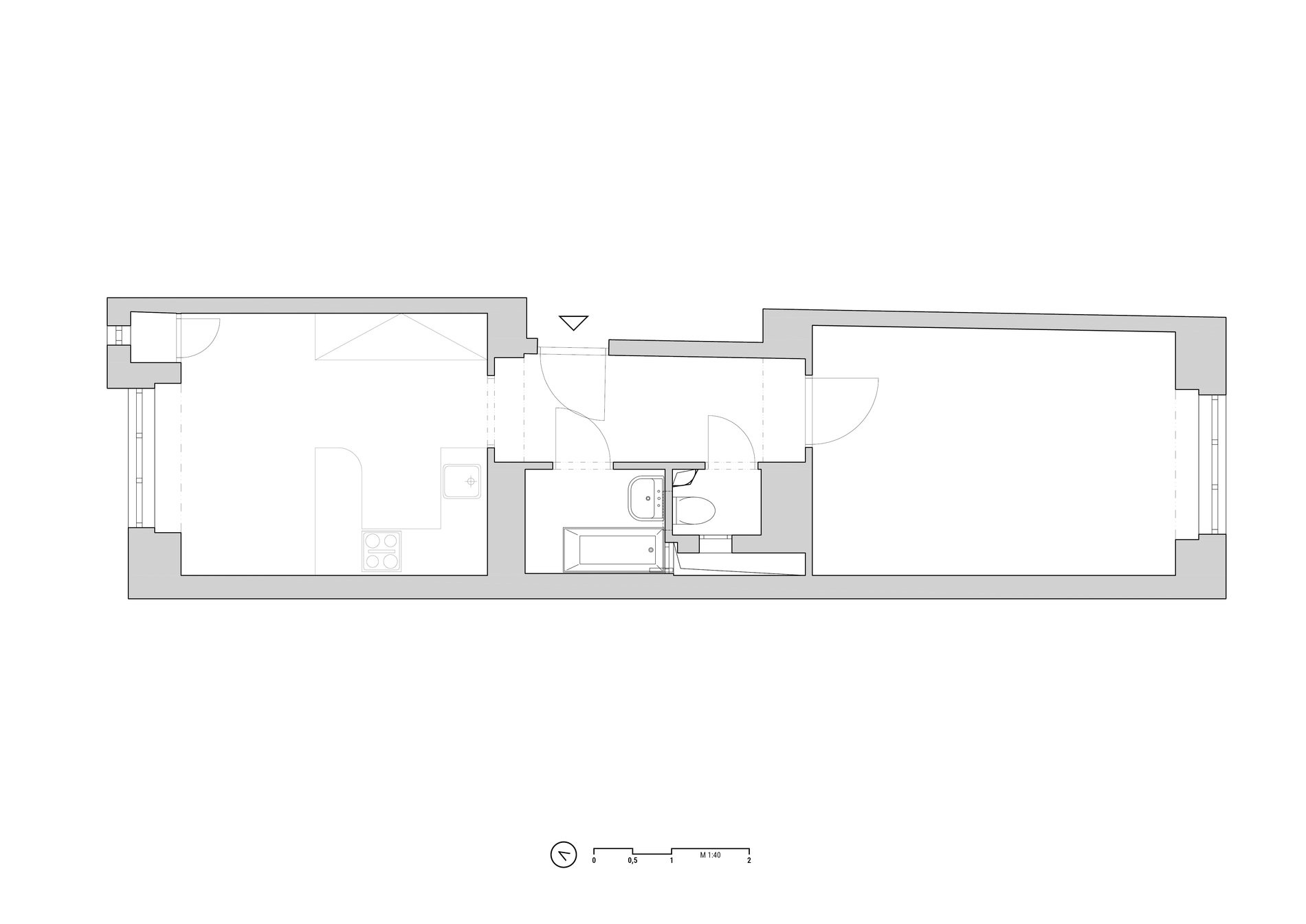 Byt Praha Karlín – původní půdorys. Zdroj: BekArch