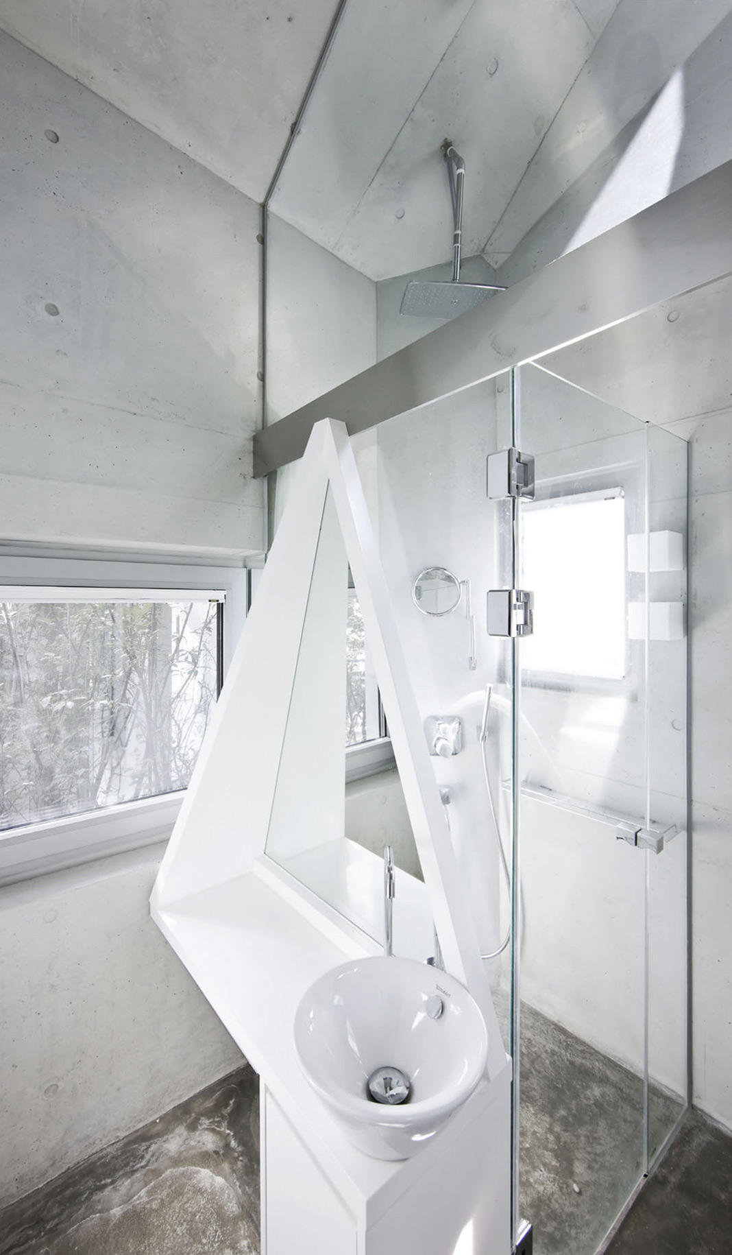 Z hlediska prostorového členění je podzemí/sklepení domu vyhrazeno především garážím (celkem čtyři vozy), úložné prostory a psí kotce. Středem pak procházíte (přes semknutou zastíněnou „údolní“ zahradu) ke schodišti do vyšších pater. Přízemí je definováno jako prostor společenský. I proto se zde nachází „centrální“ obývací pokoj.