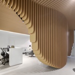Užitá „magie“ spočívala v důmyslně vytvořené optické iluzi, která nápaditě rozdělila prostor, aniž by mu ubrala na vzdušnosti. Architekti do prostoru zapracovali dřevěnou plastiku vytvořenou z jednotlivých tvarovaných segmentů (přes 300 vyfrézovaných kusů, od úzkých po ty nejširší, téměř se dotýkající podlahy), které od sebe recepce funkčně oddělila, ale stále mezi nimi funguje kontakt.