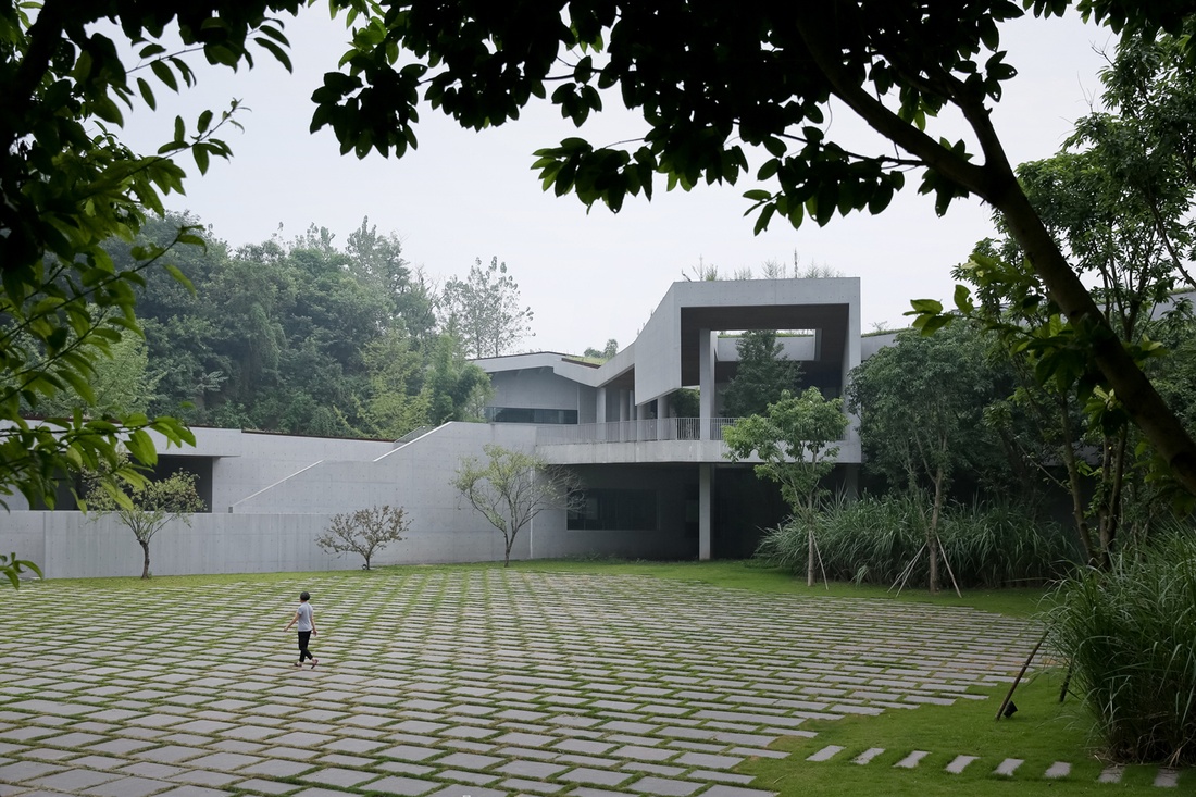 Budova co srostla s terénem, rozdíl mezi exteriérem a interiérem nedělá