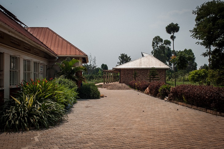 Skromná výbava obou místností nahrává snadné změně prvotního účelu. Centrální prostor, oddělený od vstupní chodby dveřmi, je pak vyhrazen velkému přednáškovému sálu. Ten do svých útrob pojme na 150 posluchačů, kteří se v prostoru usadí na jednotlivých stupních podél obvodu místnosti, vytvořených z pálených cihel a rohoží. Ostatně, "sluncem pálené" hliněné cihly a tradiční rákosové rohože Mukeka tvoří podstatnou část patrného stavebního materiálu v rámci celé budovy. Pro přednášejícího se v čele posluchárny nachází menší vyvýšené pódium, jinak je prostor ponechán volný. Představa přeplněné a uzavřené místnosti v horkém prašném klimatu jihozápadní Ugandy, navíc bez oken, sice vyvolává pocit mírné klaustrofobie, ale právě v tomto aspektu se zrcadlí invence Rosse Langdona.