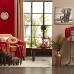 Velmi intenzivní oranžová přibližující se k červené je také ostrá a dominantní. Je třeba ji utlumit jemným dekorem dřeva či neutrálními barvami. Hodí se k etno či orientálnímu stylu.