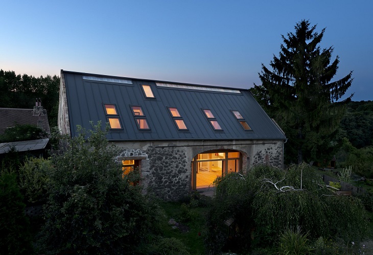 Projekt českého architekta Filipa Noska, který působí v německém studiu A2F, představuje v podstatě moderní dřevostavbu rodinného domu vsazenou do původního pláště historické stodoly. Z pohledu realizace jde o nákladnější variantu než novostavba. Střechu stodoly bylo nutné nahradit a citlivě spojit do celku, který bude charakteristický harmonií historie a moderní současnosti, přitom navenek nenarušit charakter stodoly a uvnitř naopak poskytovat plnohodnotný komfort pro bydlení. Právě k tomu byla krytina SATJAM Rapid ideální, zejména spojením moderního materiálu a technologie výroby a klasického vzhledu krytiny, který zajistil citlivé architektonické řešení střechy.