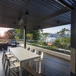 Výhledy z terasy jsou opět vymezeny či doplněny vzrostlými stromy, aby se obyvatelům nabízel výhled do zeleně (a chytře byl překryt výhled na okolní zástavbu). Trochu divočeji zní věta z popisu projektu: „Vizuálně podtržené bezpečí a dostatek soukromí při pohledu zvenčí umožňuje obyvateli velmi jednoduchým způsobem, aby mohl fungovat velmi otevřeným způsobem, a nemusel se bát kompromitace.“