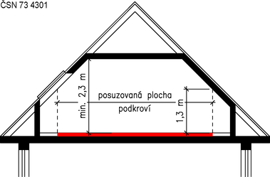 Výškové uspořádání podkroví obytných budov podle ČSN 73 4301Technická norma ČSN 73 4301 ve stavebně technických a funkčních požadavcích na stavby má pro obytnou místnost mnohem konkrétnější požadavky. Obytná místnost musí mít plochu alespoň 8 m2, a pokud byt tvoří jediná místnost, musí mít plochu nejméně 16 m2.