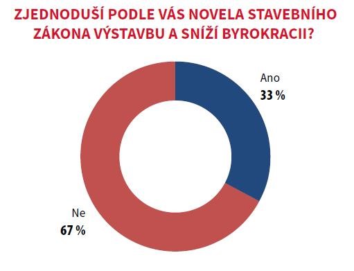 V názorech na vliv nové legislativy jsou developerské firmy spíše pesimistické. Dvě třetiny ředitelů (67 procent) se domnívají, že novela stavebního zákona nepřinese ani zjednodušení výstavby, ani nesníží současnou míru byrokracie. Nejednoznačný je pohled na urychlení výstavby díky spojení územního povolení, stavebního řízení a posouzení vlivu na životní prostředí. Zde polovina (50 procent) ředitelů zrychlení procesu předpokládá, druhá polovina má názor opačný.