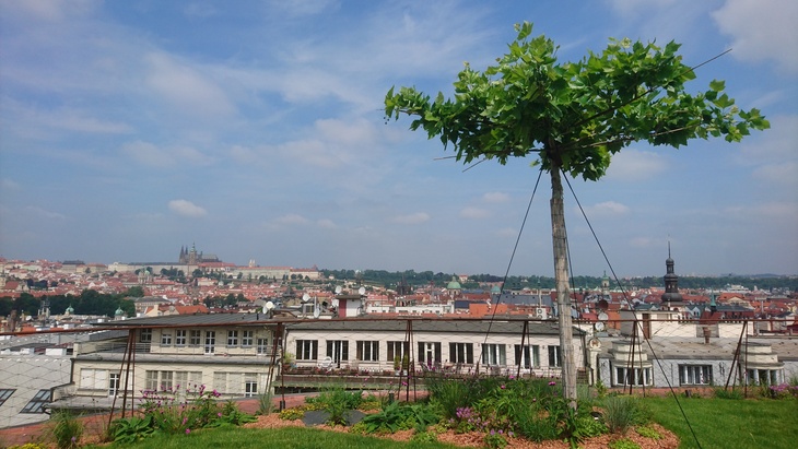 Pohled ze střechy paláce s vysazeným stromem. Autor: Ing. arch. Jakub Kopecký