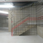 Mnoho netypických detailů a technologických postupů, kterými jsou například rozličné druhy bednících desek s odlišnými texturami muselo být nejprve před realizací v exponovaných částech budovy ověřeno v místech, kde případný neúspěch není tolik zřetelný. Tímto se dostáváme do prostor garáží, ve kterém svou stopu (možná i doslova) zanechal umělec Patrik Hábl. Tak jak jsme si již zvykli hledat skryté detaily a vtipy ve vstupním podlaží můžeme pokračovat i zde u maleb a instalací zmíněného umělce. Není náhodou, že kvalitní stavbu lze často identifikovat i přístupem autora k místům ne zcela běžně přístupným, jako jsou toalety nebo právě garáže. To vše by ale nemohlo vzniknout bez spolupráce všech zúčastněných stran, a tak například na jedné ze stěn můžeme najít otisky rukou a podpisy jednotlivých dělníků a řemeslníků pracujících na stavbě, jak tomu bývalo v dřívějších dobách.