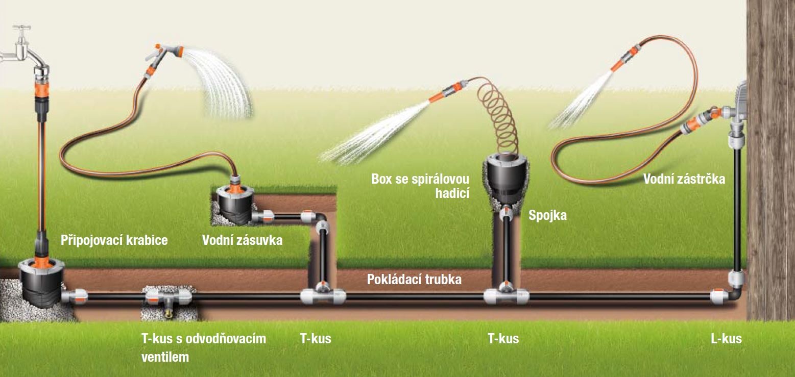 GARDENA Pipeline – jako podzemně instalované rozvody vody, dopraví vodu na ta místa v zahradě, kde je zapotřebí.