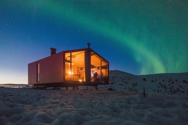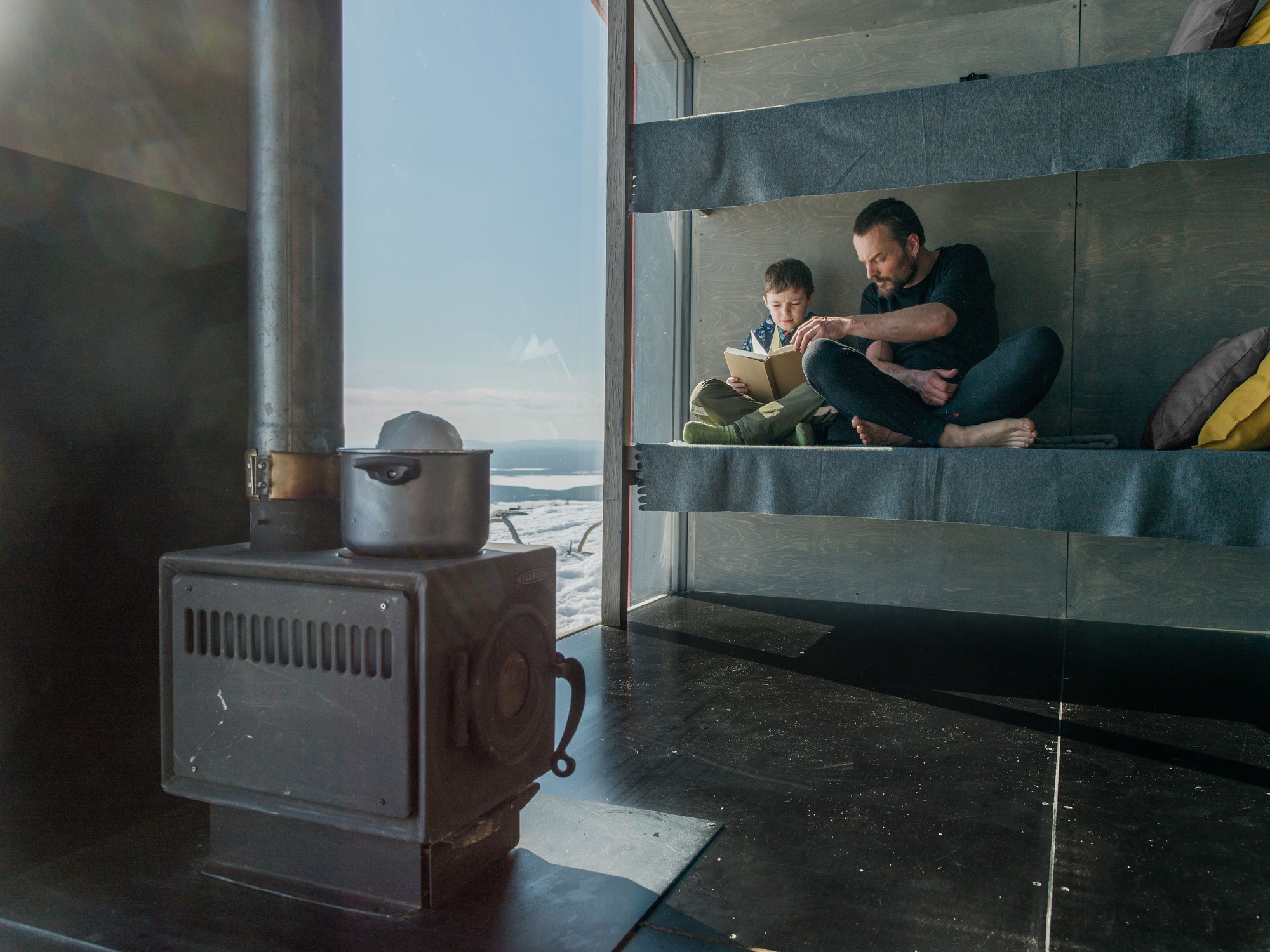 Odpovídá tomu systém větrání a také povrchová úprava stěn, tlumící přímou kondenzaci vodních par. Nechybí pochopitelně kamna na dřevo, která jsou odkouřena vysokým komínem. „Stavba je kombinací velmi jednoduchého plánu s high-tech materiály, zařazenými s ohledem na nízké teploty a expozici vůči silným větrným poryvům,“ dodává Ovčinikov. Zvolená skladba materiálů také umožnila snížit očekávanou váhu celého objektu na polovinu proti standardnímu provedení.