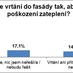 Markýza, satelit, domovní číslo či prádelní šňůra, to jsou jen příklady předmětů, které na fasádu svého domu někdy připevňovalo, nebo plánuje připevnit, 54 % Čechů. Častěji jsou to lidé žijící mimo Prahu a povětšinou v zateplených domech a bytech. To však jejich obyvatele nijak neomezovalo. „Očistíme-li výsledky průzkumu od lidí žijících v nezateplených domech, 15 % majitelů či nájemníků zateplených domů se nezajímalo o správné technologické postupy u vrtání do fasády. Každý šestý se pak o správnost postupu možná zajímal, ale neřídil se jím,“ uvádí Pavel Zemene, předseda Sdružení výrobců pěnového polystyrenu.