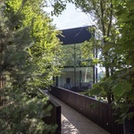 Glass Villa je podle Mecanoo architecten oázou. Zvláštní, protože se nenachází uprostřed pouště, ale je ztracená mezi jezery Yoo a mrtvými rameny řeky Temže, nedaleko vesničky Lechlade v Gloucestershire. Mimochodem, to je to nejzazší místo, kam můžete po řece dojet lodí. A právě tady, v živelně zelené krajině, usazená se stínu stromů, se za kopcem nachází tato mimořádná stavba. Na první pohled z břehu k vidění není, musíte k ní dorazit přes klikatící se můstek. Tato stezka, lemovaná vodní hladinou a vzplývavými rostlinami, vás dovede až k nečekanému cíli. Z terasy se můžete ještě rozhodnout, ze které strany se dovnitř dostanete.