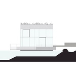Pocit pohybu na hladině je dosažen chytře rozvrženým plánem objektu, který do přízemí zasadil místnosti, které v zásadě nepotřebují výhled. Je tu malý kinosál, herna, wellnes se saunou a bar. Tyto komfortní záležitosti pak na sobě nesou místnosti, které se již opájí výhledem do okolí z většího nadhledu. Ostatně, pokud si chcete dopřát bližší kontakt s přírodou, je tu 80 metrů čtverečních střešní zahrady s terasou, a dalších 176 metrů teras, obkružujících celý objekt. Skleněná fasáda je v tomto případě anonymizujícím prvkem.