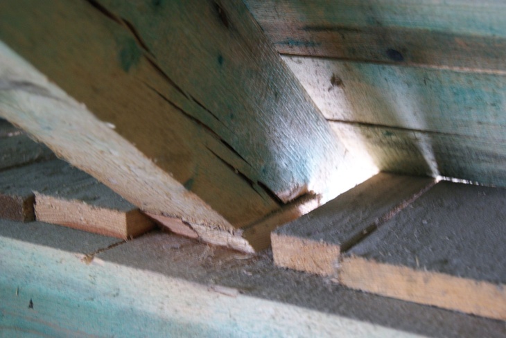 Nebyly splněny snad žádné konstrukční zásady pro provádění tesařských konstrukcí, spojů, místy se objevuje zářez na vaznici, který se zřejmě nepovedl