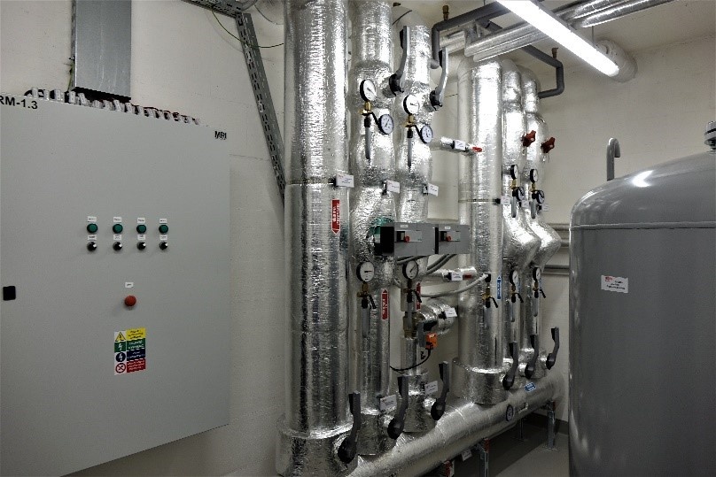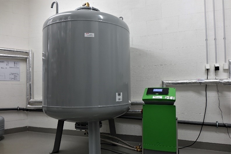 Vysoké technické úrovni objektu odpovídá vybavení automatickou expanzní stanicí Reflex Variomat, v tomto případě i s automatickým odplyňováním.