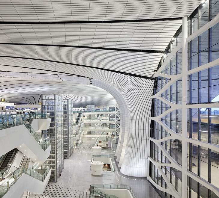 Za projektem celého konceptu terminálu stála malířka a dáma světové architektury, Zaha Hadíd. Bohužel nás opustila v roce 2016, ale odkaz jejich nespoutaných vizí tu bude žít dál. Terminál letiště v Daxingu se rozbíhá do šesti ramen, a proto svým designem trochu připomíná mořskou hvězdici. Organické tvary měla britsko-irácká architektka opravdu ráda.