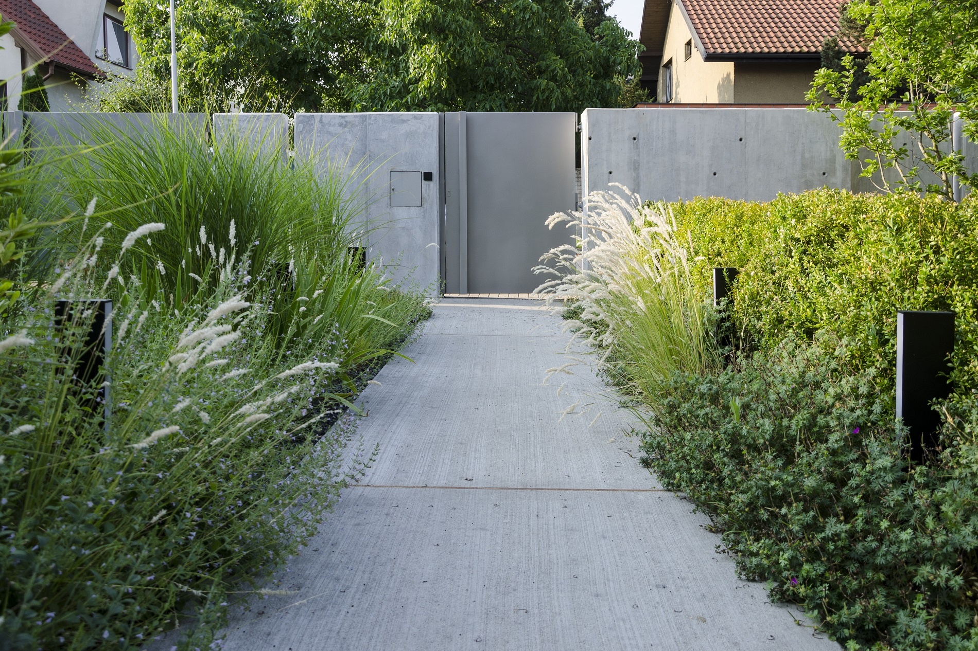 Používejte traviny, krásně se doplňují s moderní architekturou, s betonem i sklem Foto: Atelier Flera