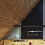 „Tíha a lehkost. Beton ztělesňuje těžkou dutou platformu, částečně zanořenou do zemského povrchu s takřka jeskynní atmosférou. Ukrývá modřínové kabiny ložnic a servisní prostory domu. Na tomto kusu skály jsme pak o sebe zapřeli dvě lehké modřínové desky, které mezi sebou svírají volně plynoucí prostor s otevřenými výhledy do horské scenérie.“ Výsledek je působivý. Ale asi trochu jinak, než by se předpokládalo. Stavba víkendového domu není v tomto případě monumentem, byť stojí o samotě. Je součástí něčeho většího, ladí a zapadá do okolí.