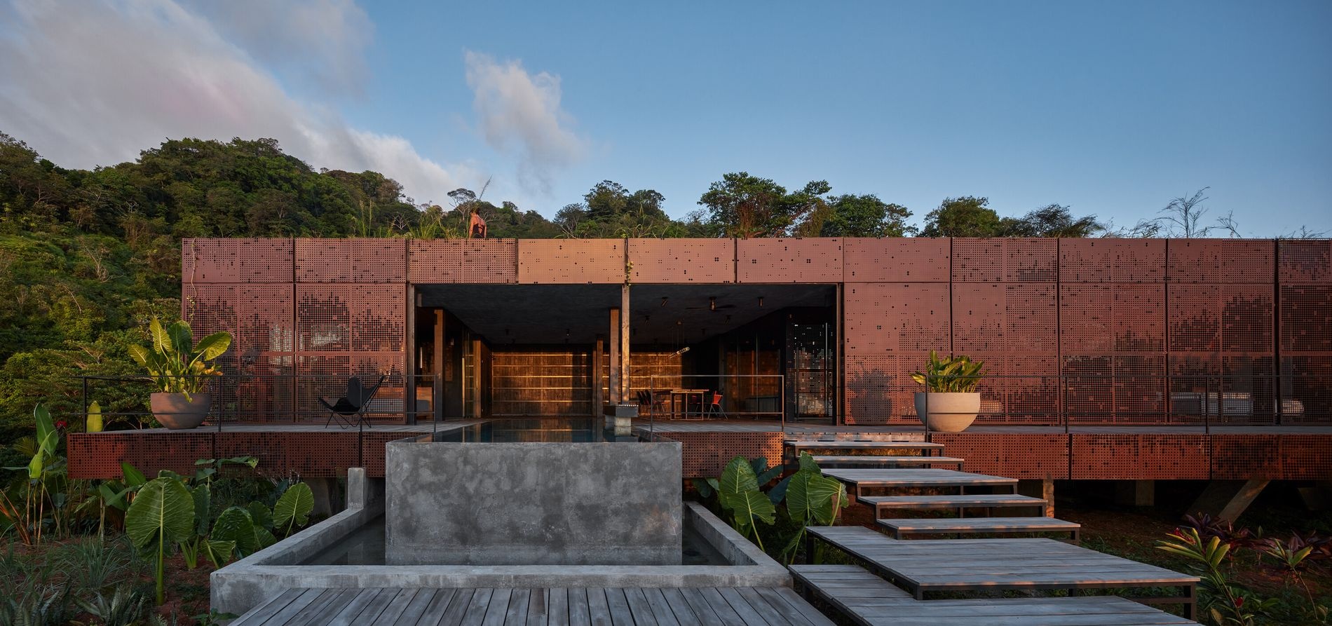 Projekt, pod kterým jsou podepsány architektky studia Formafatal, Dagmar Štěpánová a Martina Homolková, by v Čechách neměl šanci na úspěch. To ale ani nebylo záměrem, protože je doma tam, kde dokonale sedí. Uprostřed tropů Kostariky. Tady, jen na dohled proslulé pláži Playa Hermosa, si nyní pyšně hoví v mírném svahu fenomenální Atelier Villa, objekt, který byl programově navržen jako soukromé rodinné obydlí investora. A nestojí tu sama. Společnost jí dělají další hodnotné objekty. Je tu ještě masiv z betonu vybudované Art Villy, soubor pěti vejcovitých dřevostaveb Coco Villa a tropický multifunkční pavilon Wing.