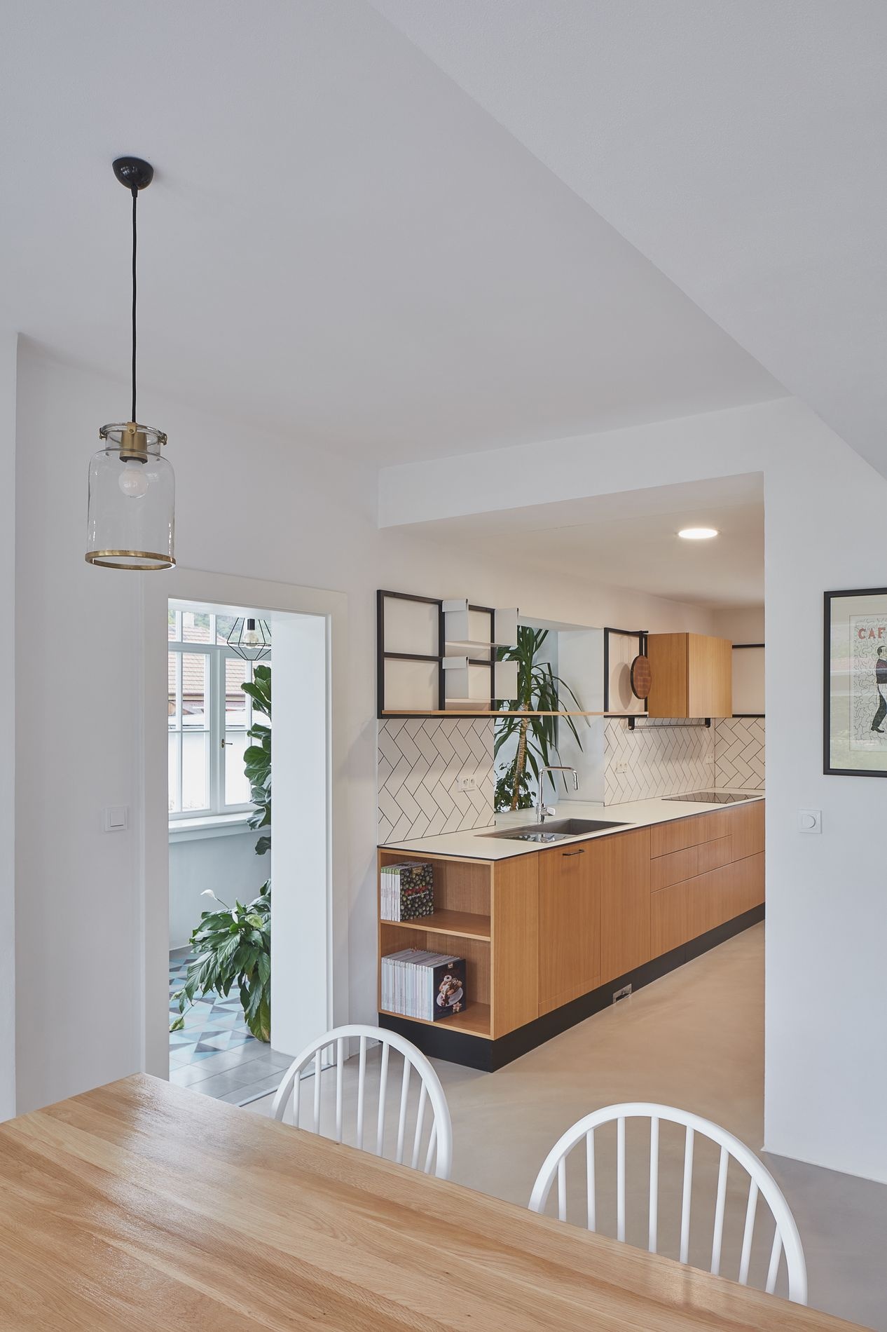 Jak je tedy možné, že se stavbě vrátila 90 let od jejího vzniku původní krása? Chtělo to víc než jen bourací kladivo, ale i dobrý plán. Takový, který dokázal vidět smysl v tom, co naznačovaly původní dispozice rodinného domu. A díky tomu dokázali architekti odlišit zbytečné od nezbytného, nasbíraný balast od zdravého jádra. Pod změtí omítek, v zarostlé zahradě, se totiž skrýval klenot. Lesk mu dodala série stavebních úprav, rekonstrukcí a ano, řízených demolicí. Jako první se musela odporoučet garáž, která k původnímu profilu stavby vůbec nepatřila, byť ji někdejší majitelé považovali za nezbytnou.
