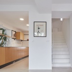 Výrazných úprav a zásahů se dočkal i interiér. Stranou musely jít některé nosné a dokonce i obvodové zdi, aby se došlo k prosvětlení a zvýšení otevřenosti v interiéru. Původní charakter ale zůstal zachován v dobových dimenzí. Pročištění tu „zvýšilo“ dispoziční plochu na 260 metrů čtverečních, do nichž vás uvede svou minimalistickou formou působivý čtvercový vstup. Ten nahradil garáž, a snížil vizuální tlak celého objektu. Uvnitř pak narazíme na po všech stránkách kompletní zázemí k obývání čtyřčlennou rodinou. S tím, že obyvatelé uvnitř mají dostatek prostoru i soukromí.