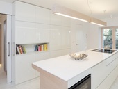 Rekonstrukce panelového bytu se přiblížila do finále. Mladému páru zbývá již jen vybavit prostor nábytkem, kuchyňskou linkou, svítidly. Museli vybrat vypínače, zásuvky, jejich design sladit se zvolenou podlahou. Design veškerého nábytku je v celém bytě sladěný. Byt je vybavený nábytkem na míru ale i sériovými kousky…